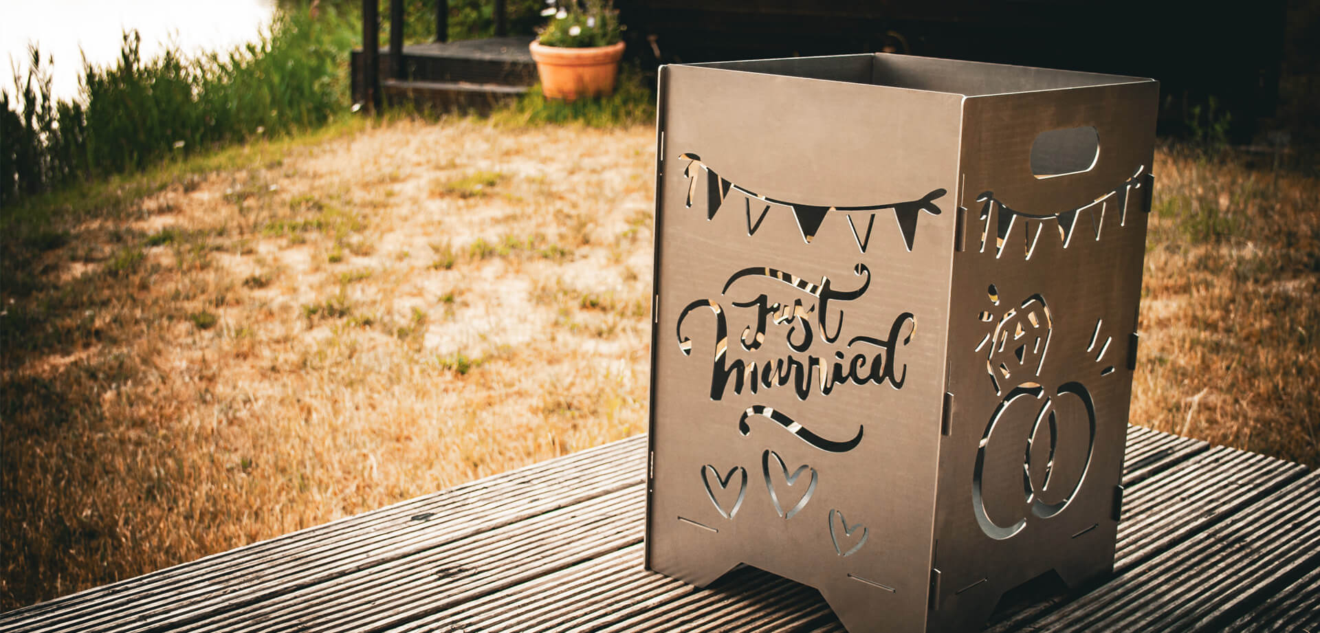 The magic of saying "I do," captured in a barrel: A wedding is a milestone in two people's lives, a day on which promises are made, vows are exchanged, and memories are created—a moment you want to cherish. Our wedding barrels represent blazing love and a commitment to a shared future. A wedding fire barrel is the perfect special wedding gift that reflects the warmth and permanence of marriage. With the option to personalize, each fire column becomes unique and tells the couple's individual love story. Whether as a wedding gift, a silver wedding anniversary gift, or simply as a memento of their special day, our wedding barrel is sure to touch the heart of every bride and groom and bring them joy for years to come.