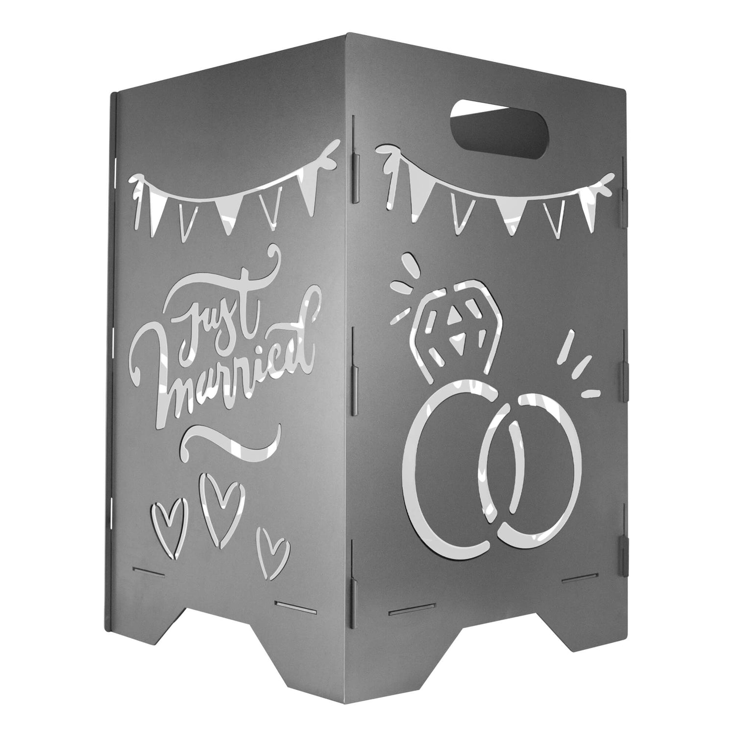 Ob zu Weihnachten, zur Geburt oder Taufe, zum Geburtstag, zum Jubiläum, zum Valentinstag oder zur Hochzeit - Ein Feuerkorb mit persönlich ausgewähltem Motiv kann weit mehr als nur für den Moment begeistern. So steht eine Feuertonne zur Hochzeit auch immer als Erinnerung an den besonders bedeutsamen Tag im Leben eines Ehepaares und an das Versprechen, das sie einander gegeben haben. Das Motiv "Liebe" auf einer Feuersäule kann ein beständiges Symbol für die gemeinsam verbrachte Zeit darstellen – für Höhen und Tiefen, für die kleinen und großen und für alle noch kommenden Momente. Und so hat jedes Motiv seine Besonderheiten.