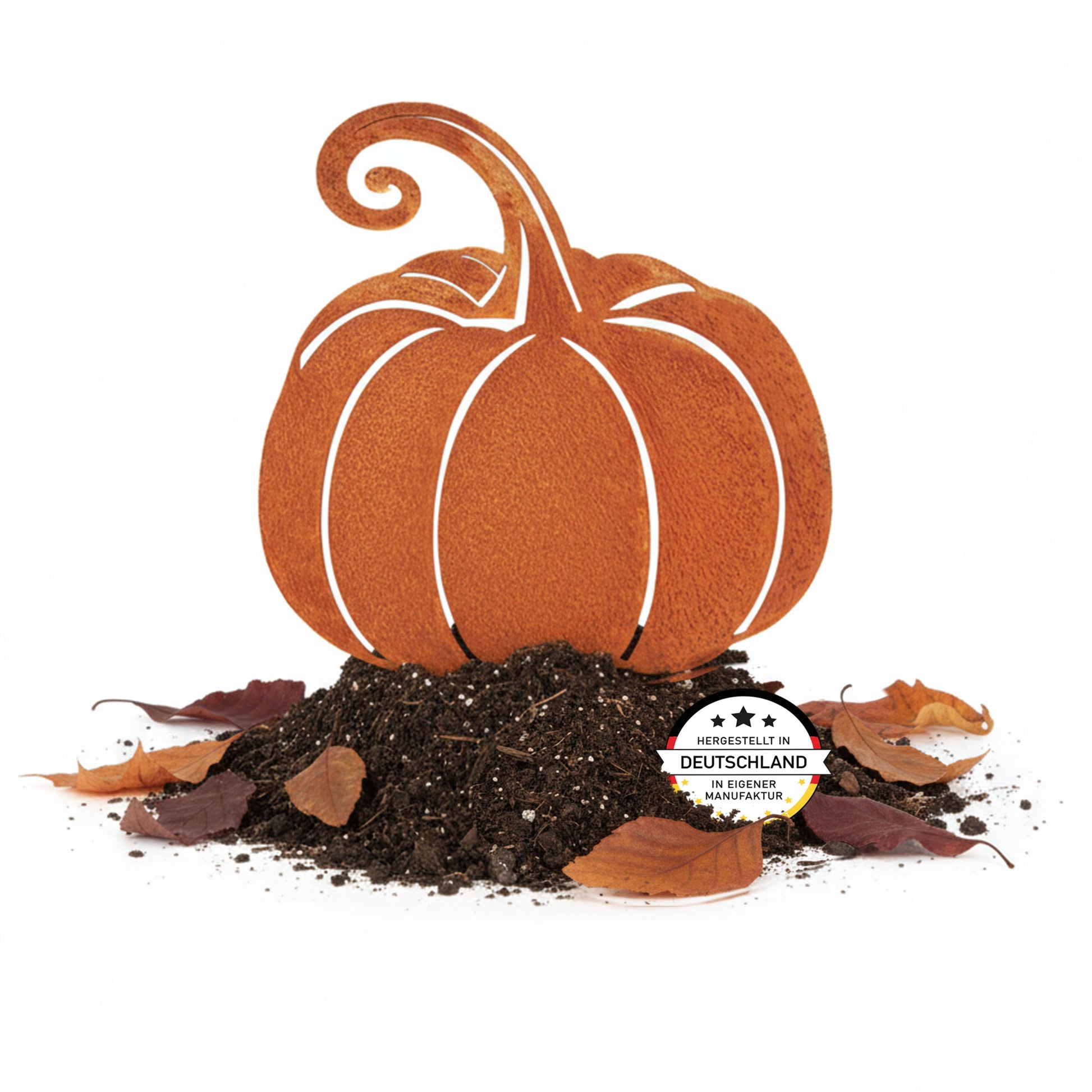 Ob als Einzelstück oder in Kombination mit anderen Edelrost-Motiven – dieser Kürbis verleiht Ihrem Garten, Balkon oder Eingangsbereich einen Hauch herbstlicher Poesie.