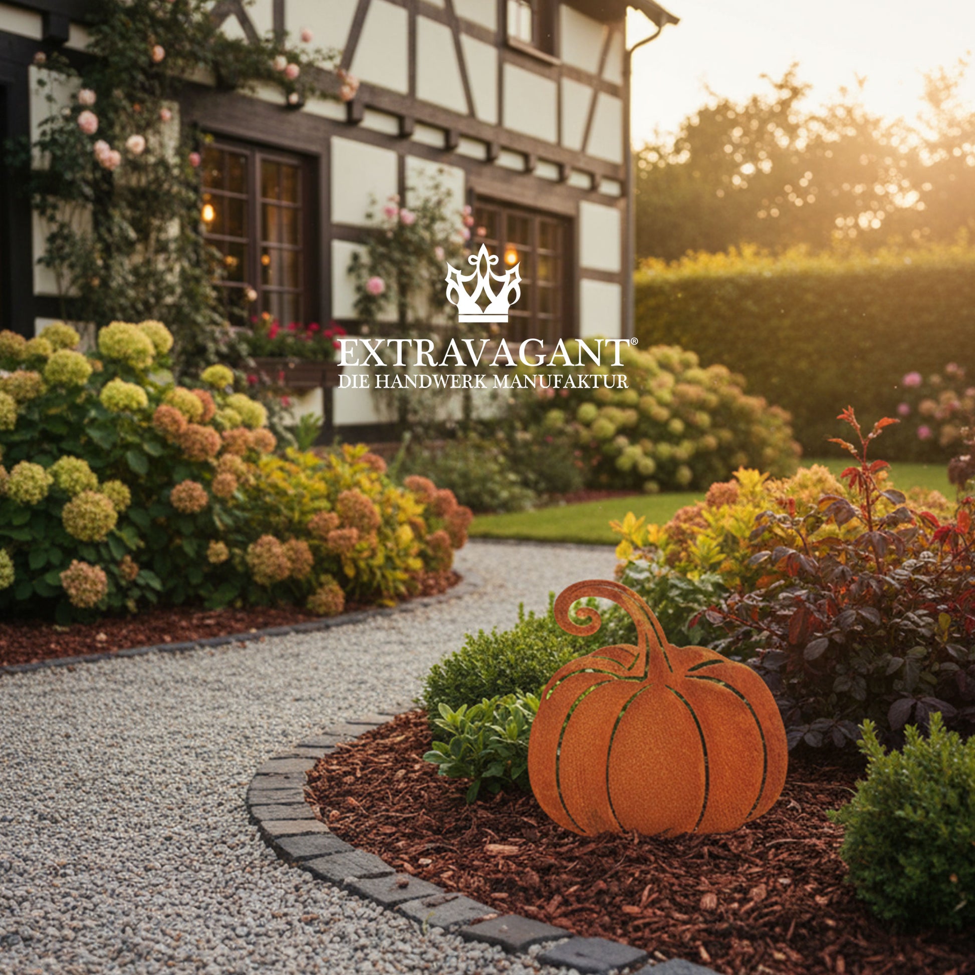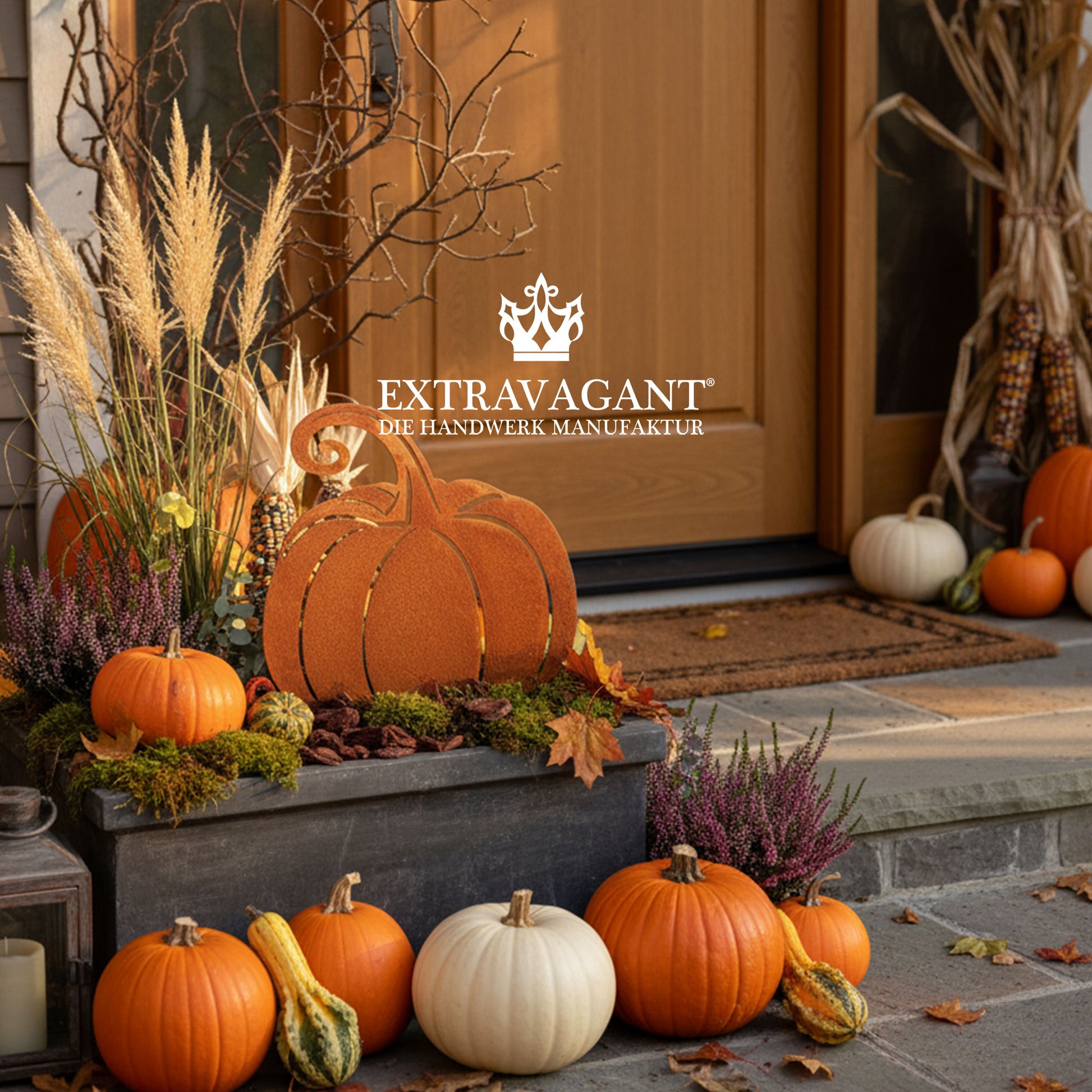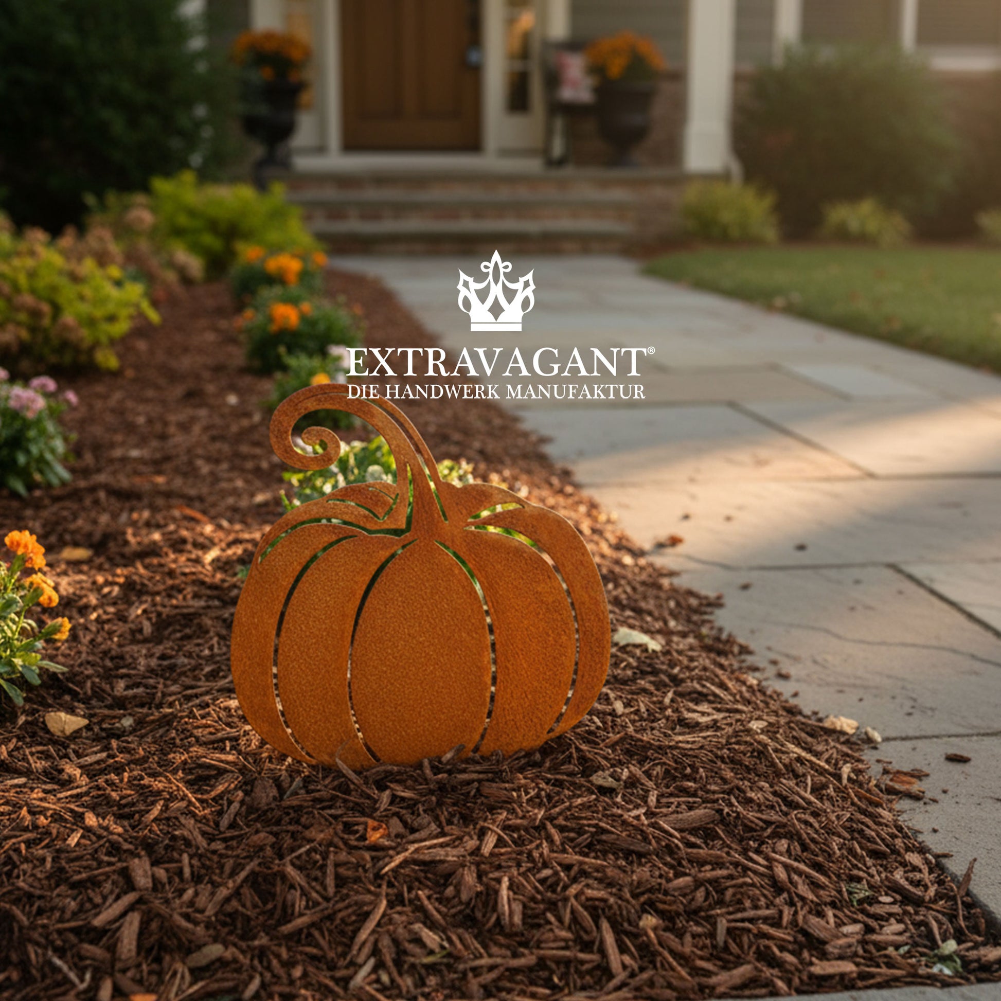 Der Herbst kann kommen – mit unserem liebevoll gestalteten Kürbis-Gartenstecker zieht saisonaler Charme in Ihren Außenbereich ein. Ob zwischen Ziergräsern, im Beet oder am Hauseingang: Der Edelrost-Kürbis fängt das goldene Licht des Herbstes perfekt ein und sorgt für eine warme, gemütliche Atmosphäre.