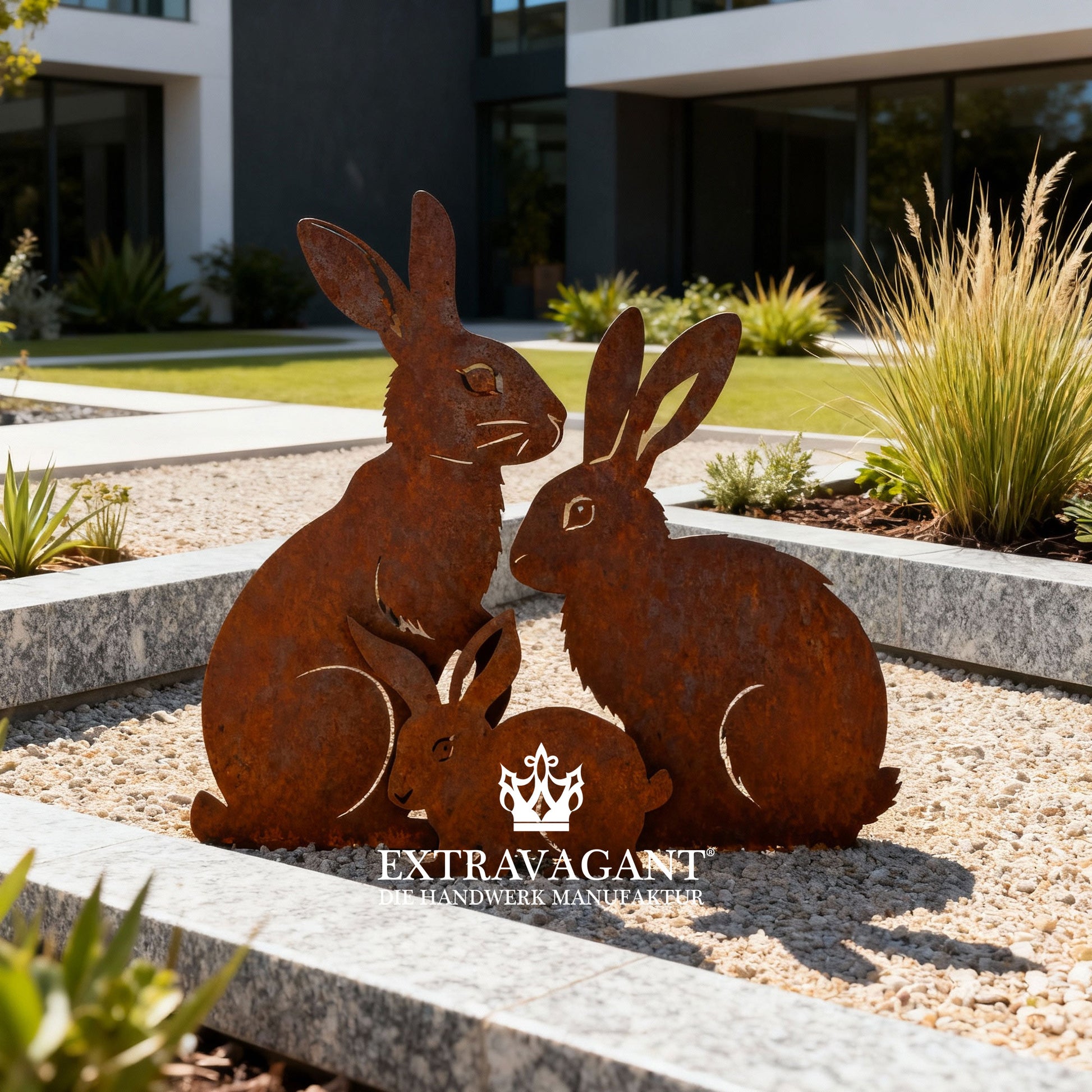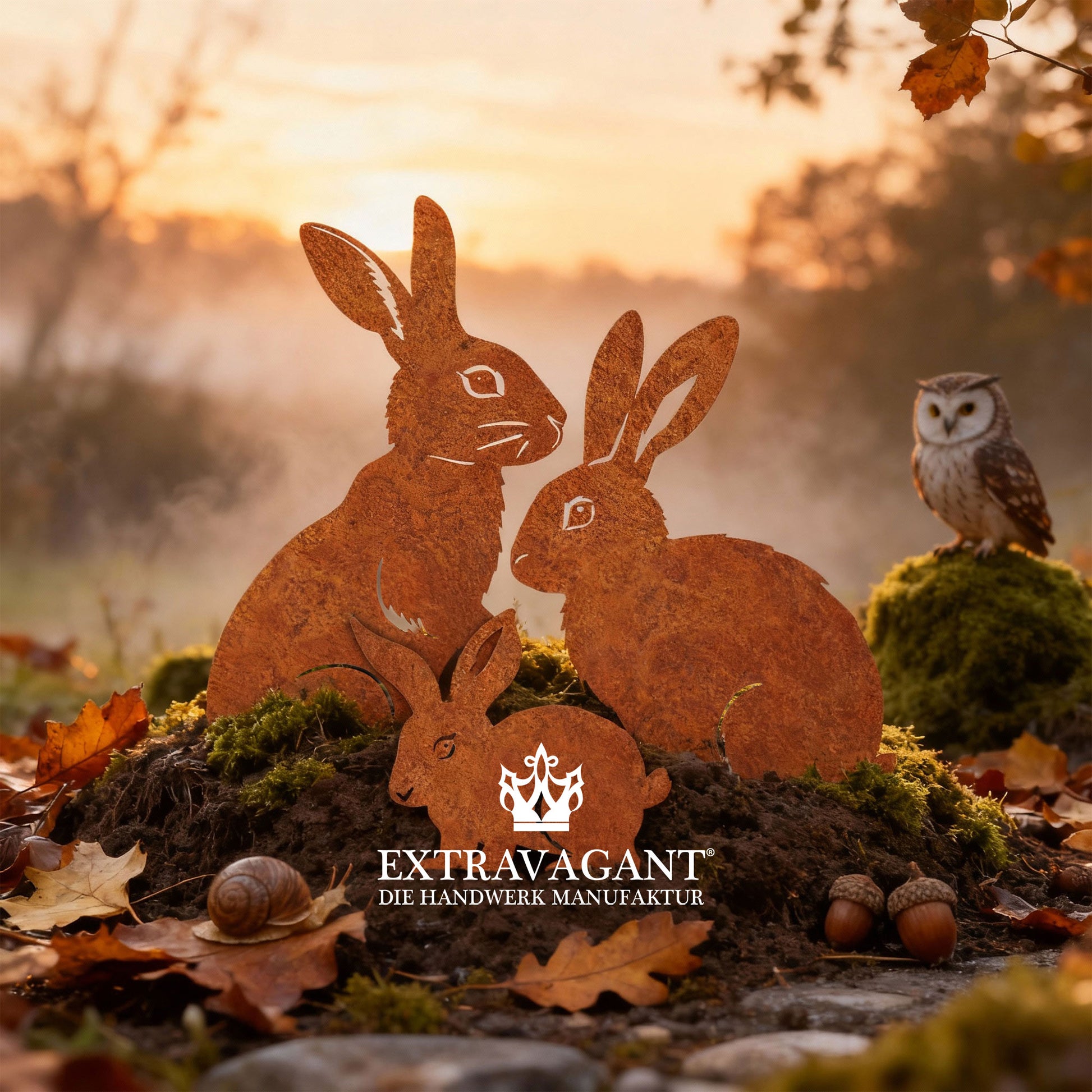 Mit zarten Linien, ruhiger Ausstrahlung und liebevoller Gestaltung verkörpert dieses Hasen-Familien-Set aus Edelrost genau das, was Gartenfreunde lieben: Natürlichkeit, Geborgenheit und stilvolle Handwerkskunst.