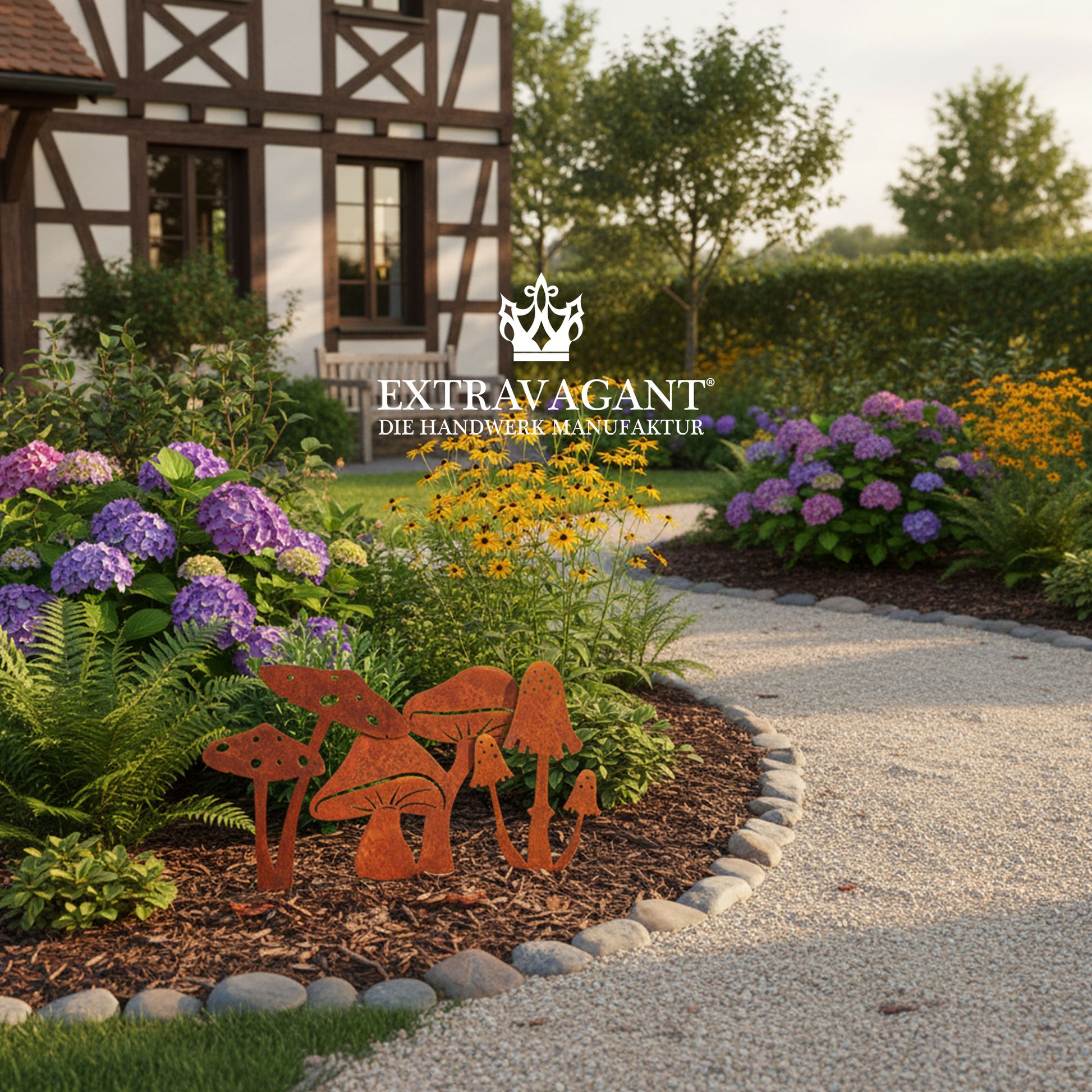 Bringen Sie mit diesem Pilz-Set ein Stück Naturkunst in Ihren Garten – charmant, beständig und einfach außergewöhnlich.